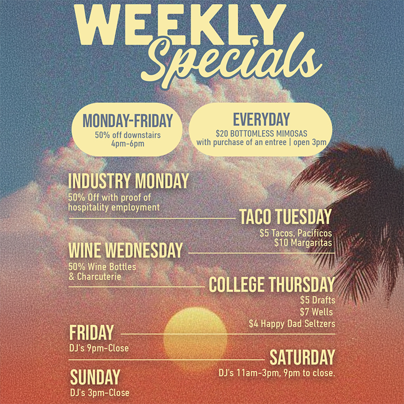 The architecture and design at FIREHOUSE capitalize on natural light and stunning ocean views, with panoramic glass doors designed to bring the outside in. The entrance walls are clad with deep shou-sugi-ban wood, which is the Japanese technique of preserving and antiquing wood, creating a charred effect. The Shou-sugi-ban is juxtaposed with intermittent mirror installations, which reflect the rising tide. Seating is varied and includes a boho-chic fireplace lounge designed by the famed, local design collective, Pow Wow. Upstairs, FIREHOUSE maintains its iconic patio with the signature fire pit and 4 private seating cabanas. A retractable awning provides shade on hot days and warmth in the winter for all our ocean-view dining tables.